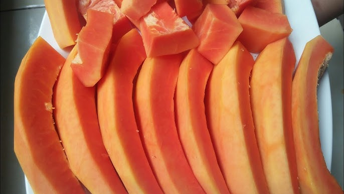 Chọn đu đủ chín tới, thịt chắc, có màu cam đẹp. Gọt vỏ, bỏ hạt và rửa sạch. Sau đó cắt đu đủ thành miếng dài hoặc lát vừa phải, không nên quá mỏng để khi sấy vẫn giữ được độ dẻo tự nhiên.