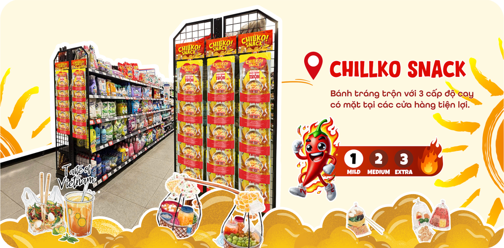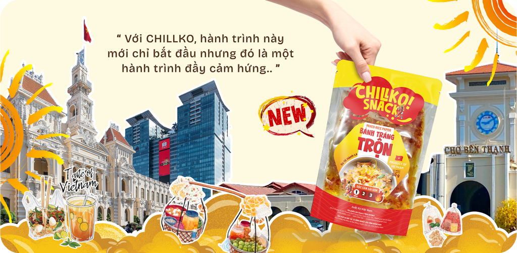 Mỗi gói bánh tráng CHILLKO là sự kết nối giữa ký ức đường phố và nhịp sống hiện đại. Chúng tôi tin rằng một ngày không xa, bánh tráng trộn sẽ không chỉ là món ăn quốc dân của Việt Nam mà còn có thể trở thành món ăn được bạn bè quốc tế yêu thích và tìm đến, giống như cách chúng ta biết đến Pocky, Bento hay Tteokbokki.