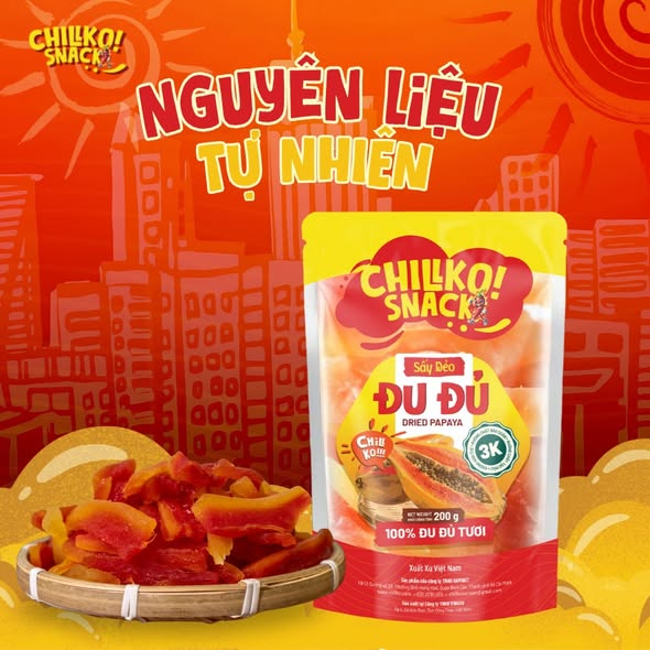 Trong những năm gần đây, trái cây sấy dẻo trở thành lựa chọn được nhiều người yêu thích vì tính tiện lợi, tốt cho sức khỏe và giữ được vị ngọt tự nhiên của trái cây tươi. Trong số đó, đu đủ sấy dẻo CHILLKO nổi lên như một sản phẩm hấp dẫn nhờ hương vị mềm dẻo, ngọt thanh và màu sắc đẹp mắt.
