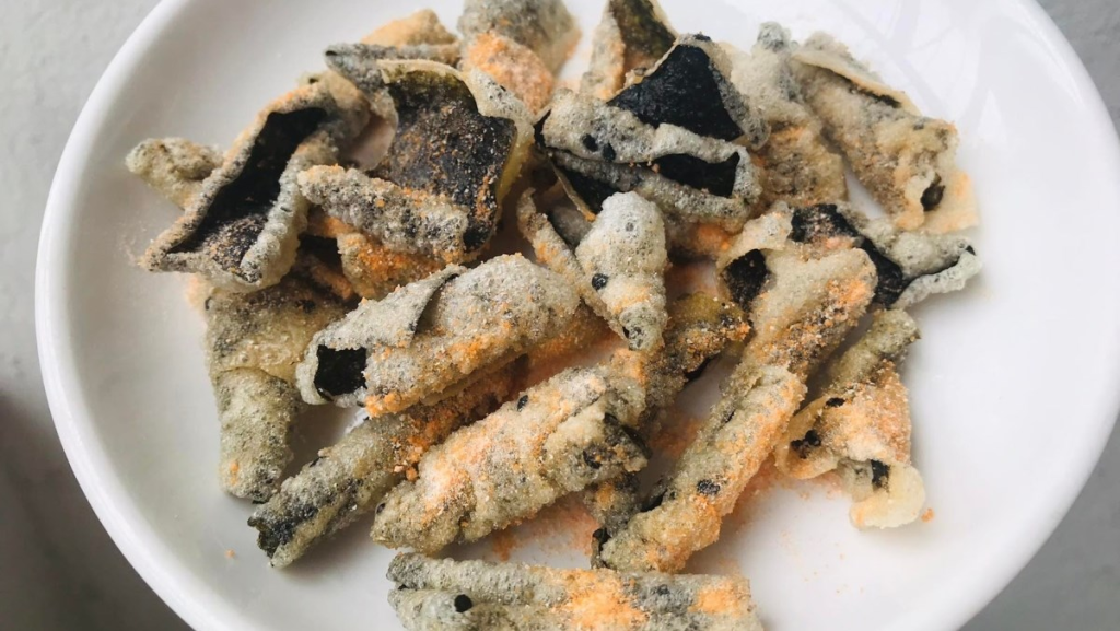 Nếu trước đây rong biển chỉ được biết đến như một món ăn kèm cơm, thì hiện tại snack rong biển phủ phô mai đã trở thành cơn sốt ăn vặt. Lớp rong biển giòn tan hòa quyện với vị phô mai béo ngậy, mằn mặn vừa miệng, mang lại cảm giác “ăn hoài không chán”. Đây là món ăn vặt được nhiều TikToker đánh giá là vừa ngon miệng vừa có lợi cho sức khỏe nhờ chứa nhiều khoáng chất từ rong biển. Điểm thú vị là các video review snack rong biển phô mai thường được quay theo phong cách “ASMR” – tiếng cắn giòn rụm kết hợp hình ảnh phô mai vàng óng phủ đầy bề mặt rong biển, khiến người xem không thể rời mắt. Với sự tiện lợi, dễ mang theo và giá thành hợp lý, snack rong biển phô mai chắc chắn là món ăn vặt không thể thiếu trong danh sách hot trend năm 2025.