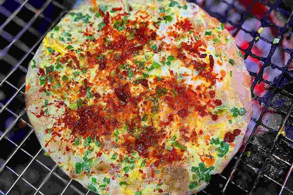 Bánh tráng nướng được mệnh danh là “pizza Việt Nam” và từ lâu đã trở thành món khoái khẩu của rất nhiều bạn trẻ. Một chiếc bánh tráng mỏng đặt lên vỉ than đỏ hồng sẽ được thêm trứng gà hoặc trứng cút, pate, xúc xích, khô bò, phô mai cùng hành lá rồi nướng cho đến khi giòn rụm. Người bán sẽ vừa nướng vừa xoay tay đều để bánh không bị cháy đồng thời topping chín đều. Món này ăn khi nóng là ngon nhất, cắn một miếng nghe rộp rộp mà vị béo thơm từ trứng và pate làm người ta không thể cưỡng lại.